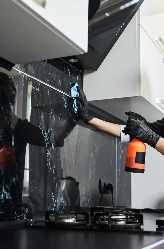 Black tiles are easier to clean than white ones, but they can still collect grease. Wipe them with warm, soapy water or a gentle tile cleaner. Avoid waxy products that leave a shiny residue.
