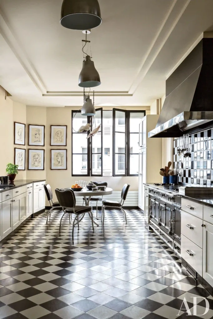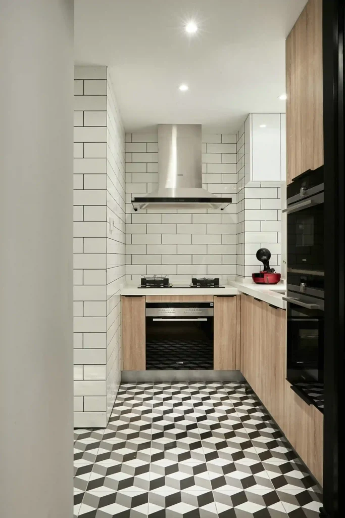 If you love a retro vibe, black and white checkerboard tiles offer a classic diner style with a modern touch. You can use them as a backsplash or extend them onto the floor for a bold look.