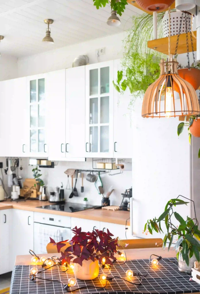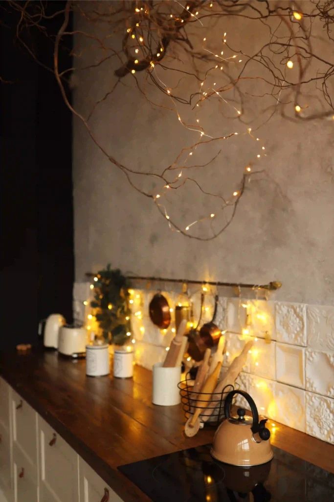 Soft, glowing lights elevate any festive decor. Wrap LED fairy lights for kitchen cabinets or around handles for a cozy vibe.