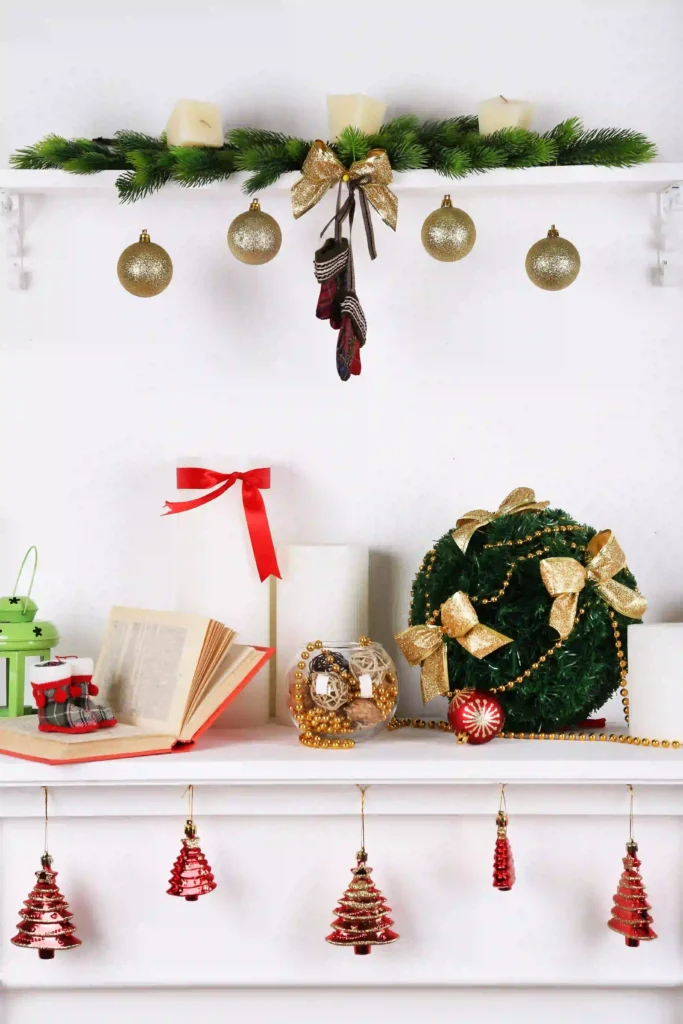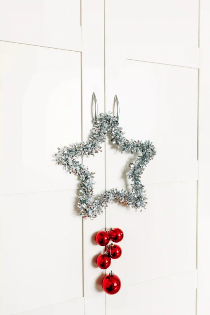Decorate with small metallic, matte, or glittery ornaments. Hang them from garlands or cabinet handles for depth.