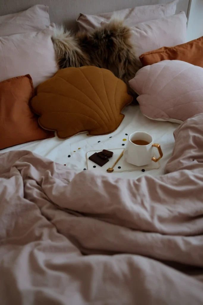 Your bed is the centerpiece of comfort. Use flannel sheets, cotton duvets, and layered blankets for softness. Mixing textures and materials such as linen, wool, and velvet adds visual richness.