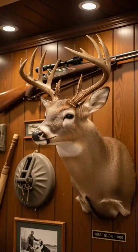 Positioning a deer wall mount above the fireplace creates visual impact. Make sure the scale is appropriate so the mount does not overpower the space. Balance it with symmetrical décor such as sconces or framed art.