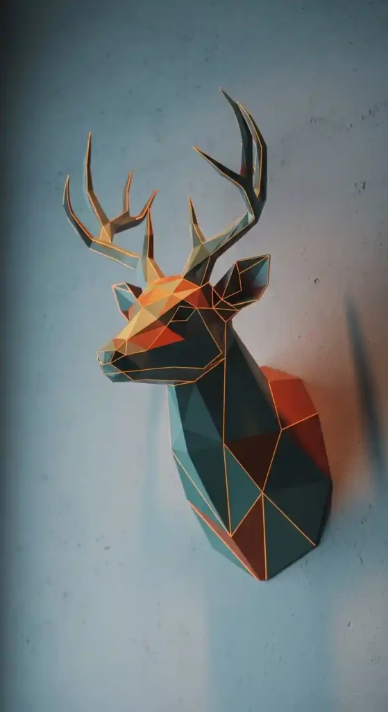Modern geometric deer mounts made from metal or carved wood add artistic flair. These designs suit contemporary spaces and make a statement as wall art.