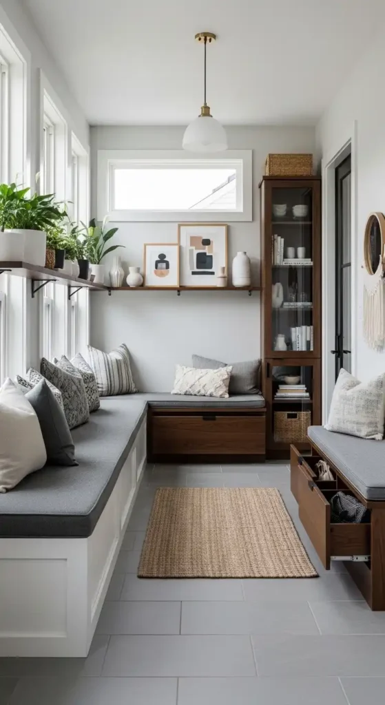 This setup helps keep your home tidy and gives you a handy spot to transition from outside to inside.