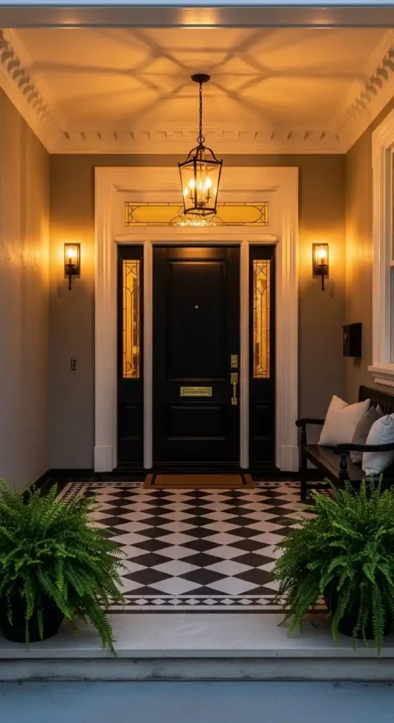 Use seating, lighting, plants, and seasonal decor to create a welcoming and stylish entrance.