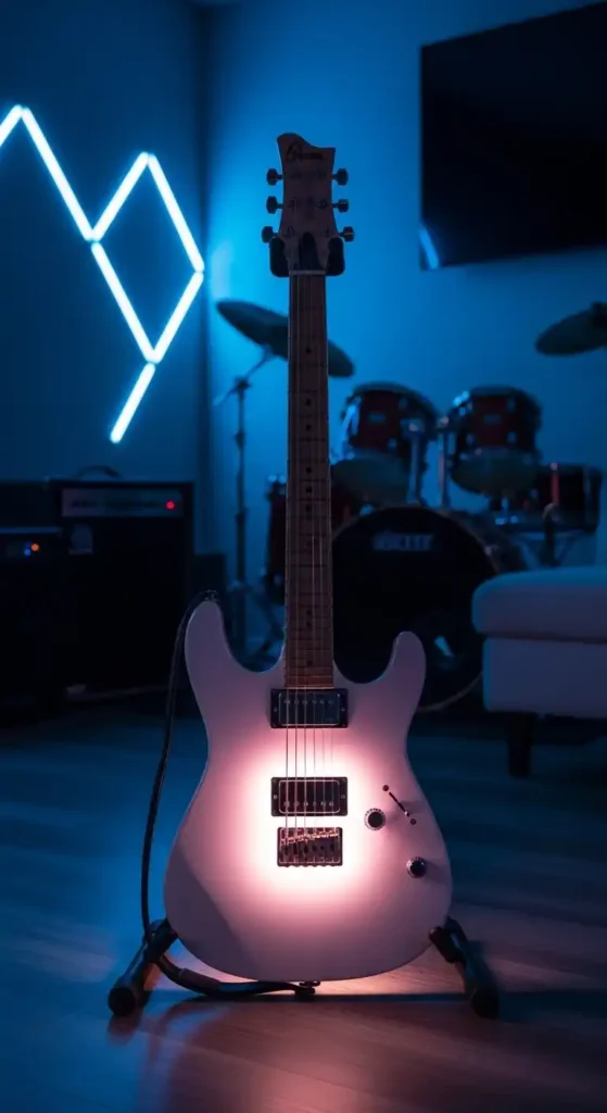 Add LED strip lighting behind your mounted guitar for dramatic impact. Soft backlighting highlights the instrument’s shape and creates a premium display effect.