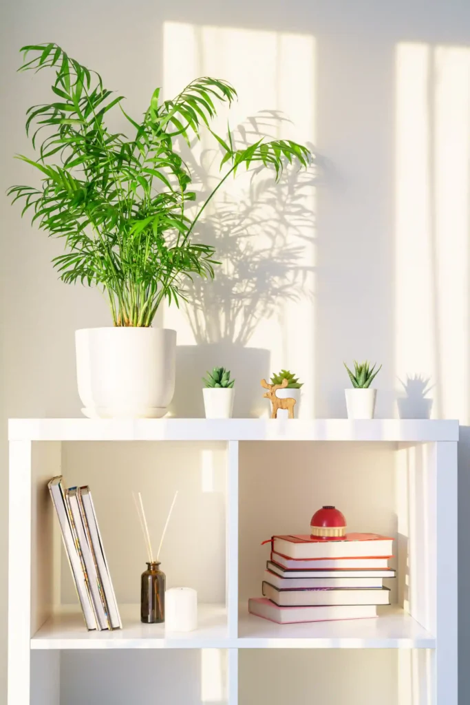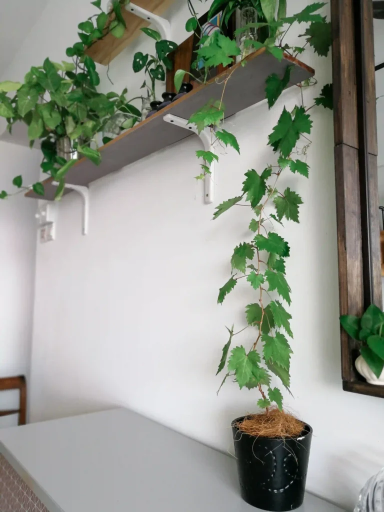 - Floating shelves where vines can trail naturally