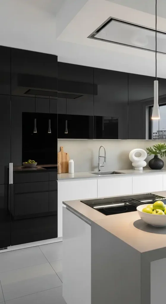 Glass wall coverings create a clean, glossy, and ultra-modern kitchen appearance. They reflect light, making small kitchens feel brighter and more spacious.