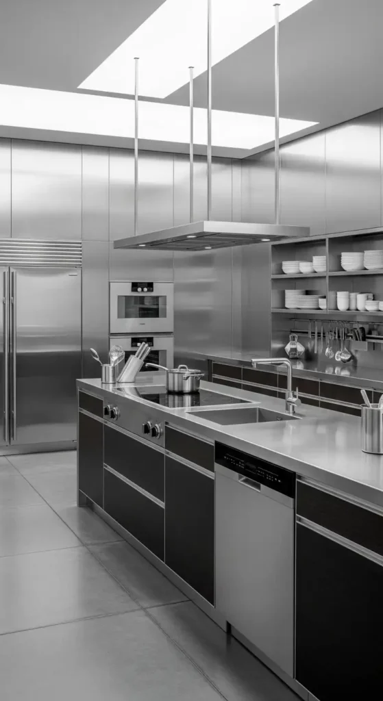 This option gives your kitchen a sleek, industrial, and professional feel.