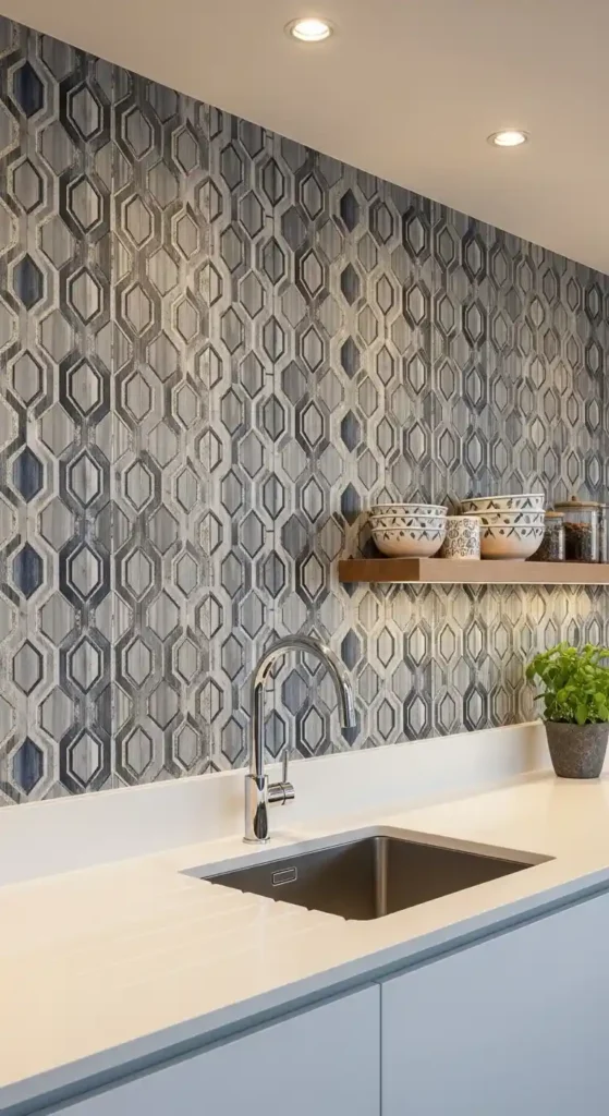 Modern waterproof wallpaper is a creative way to add patterns, textures, and personality to kitchen walls. It comes in floral, geometric, and abstract designs.