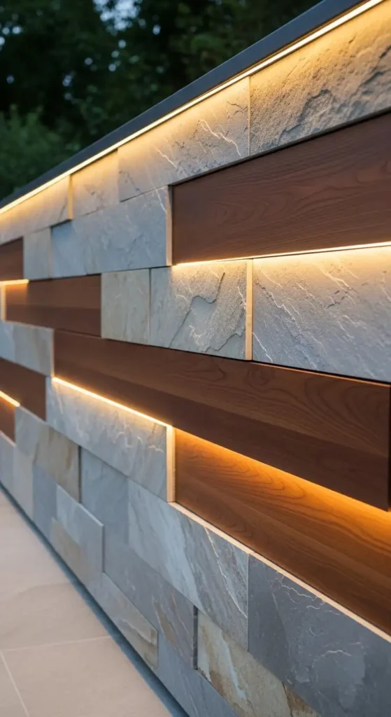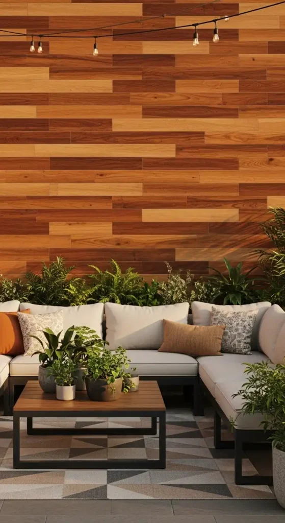 For example, pairing stone tiles with wooden panels creates a balanced and high-end outdoor design.
