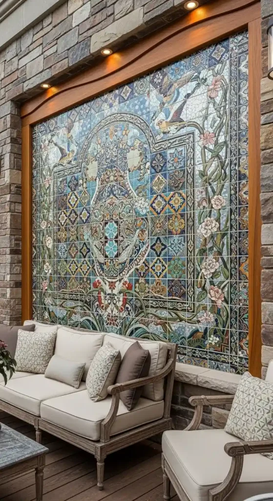Glass, ceramic, or stone mosaics can add color and detail, making your outdoor space more lively.