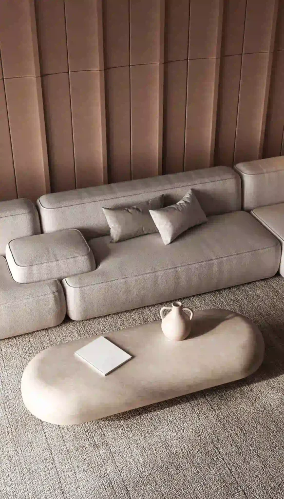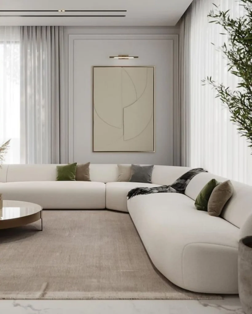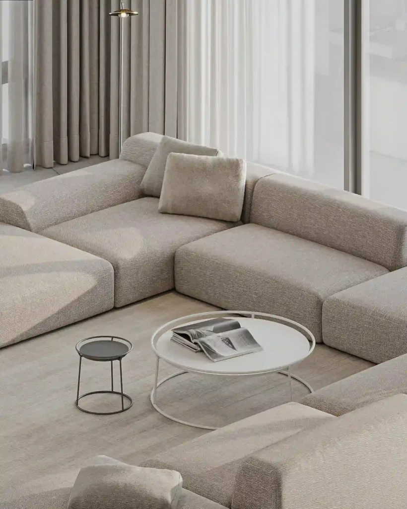 Light upholstery reflects natural light, instantly making a room feel airy. Shades like beige, soft gray, ivory, and blush soften sharp lines and help your sectional blend into the background instead of dominating the space. This trick visually expands even the smallest rooms.