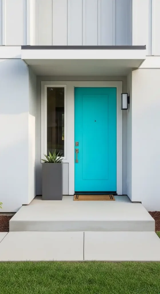 This approach works well in small spaces because it adds personality without taking up physical room. Pair the door color with minimal decor to keep the look balanced and modern.