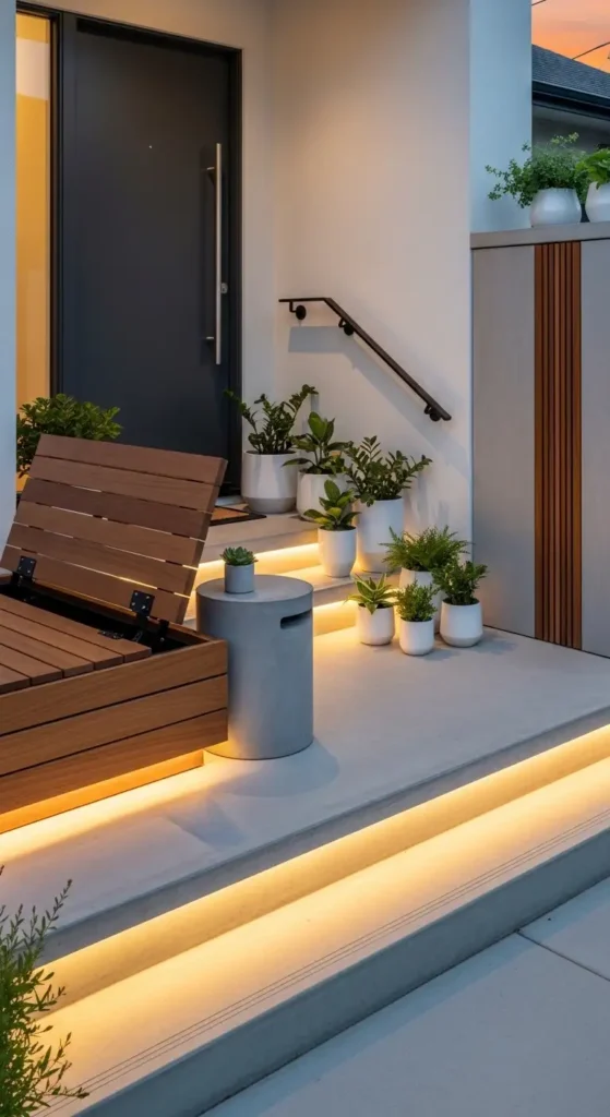 Lighting plays a crucial role in how your stoop looks, especially in the evening. Wall sconces, lanterns, or subtle string lighting can create a warm and inviting glow.