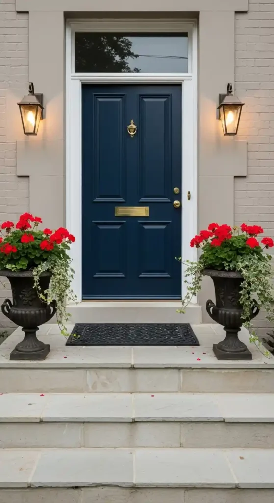 Your front door is one of the easiest ways to make your stoop stand out. A bold color like deep blue, black, or even a warm earthy tone can act as a focal point.