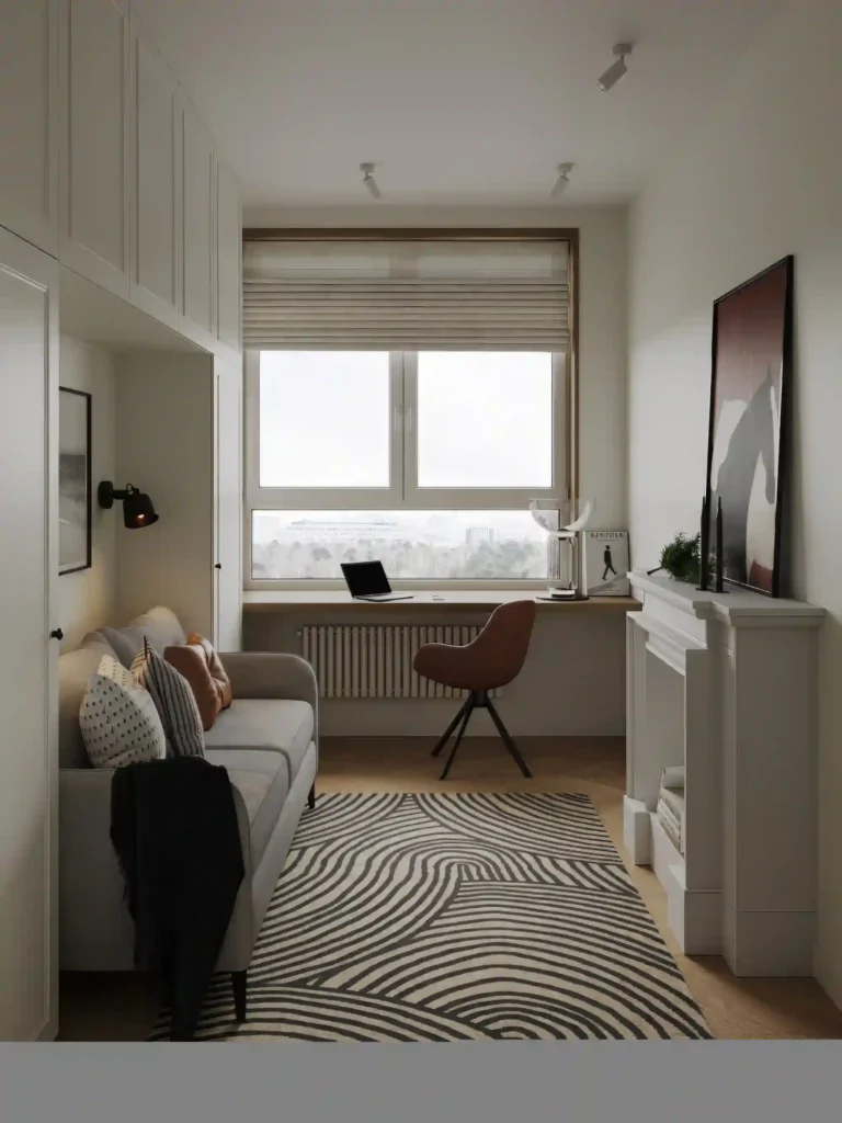 Avoid overcrowding the bay area with heavy furniture, dark curtains, or too many accessories. Keep the focus on light, flow, and usability to ensure your small living room remains spacious, airy, and practical.