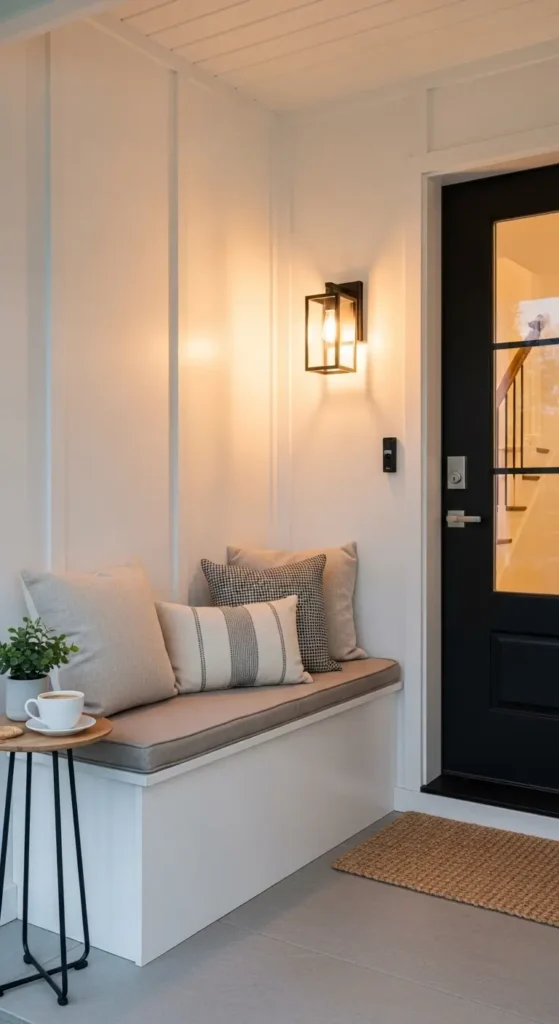Lighting can elevate the entire look. Wall sconces or a small pendant light create a cozy and inviting entrance.