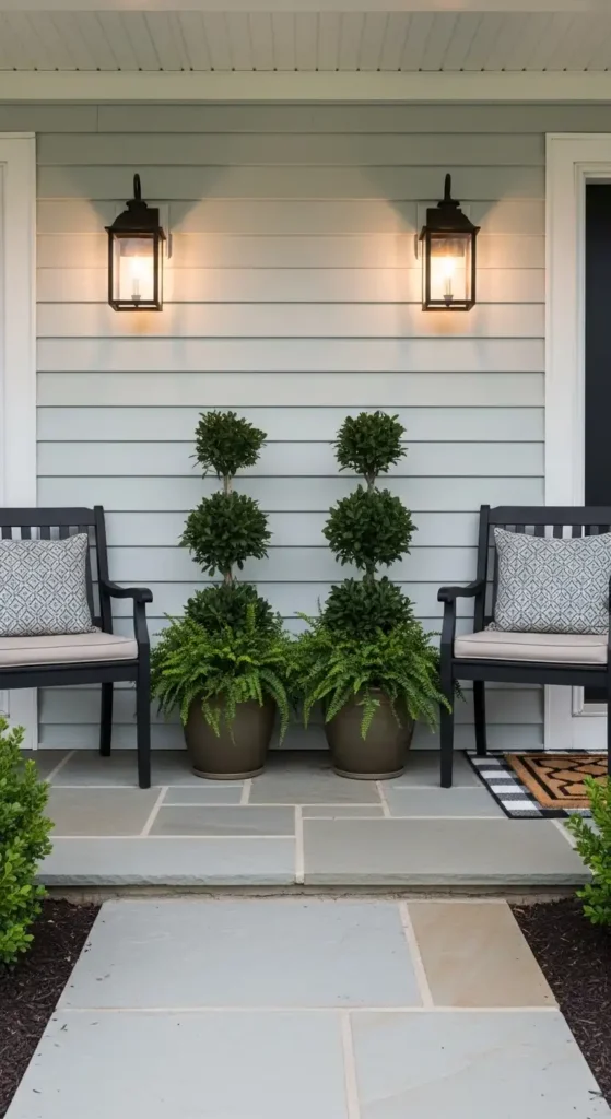 Using matching planters or lights on both sides of the door creates a clean and polished look.