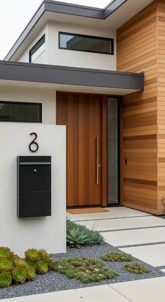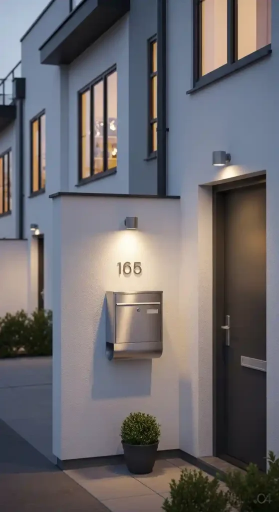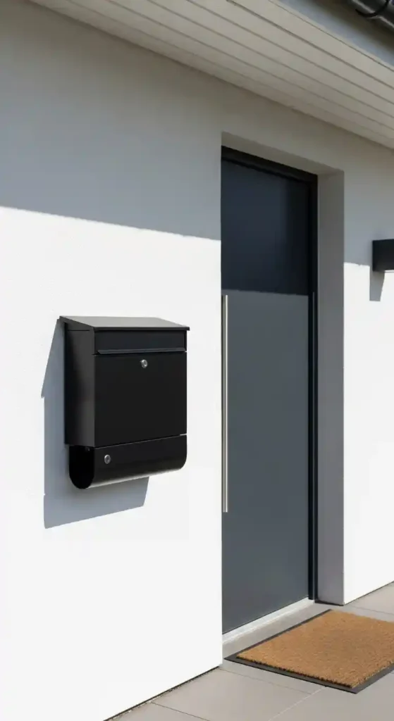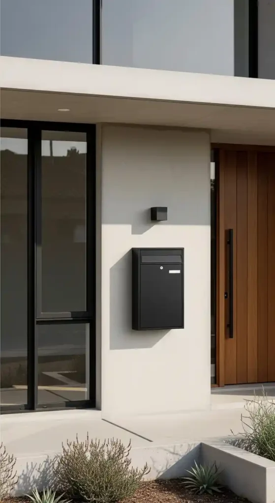 Modern wall mounted mailboxes feature clean lines, smooth finishes, and neutral tones like black, white, or brushed steel.